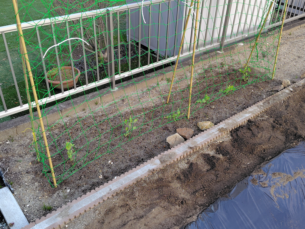 4月14日 ムサシで6苗セットを購入しサブ畑に植付ました。スナップエンドウの栽培は初^^
