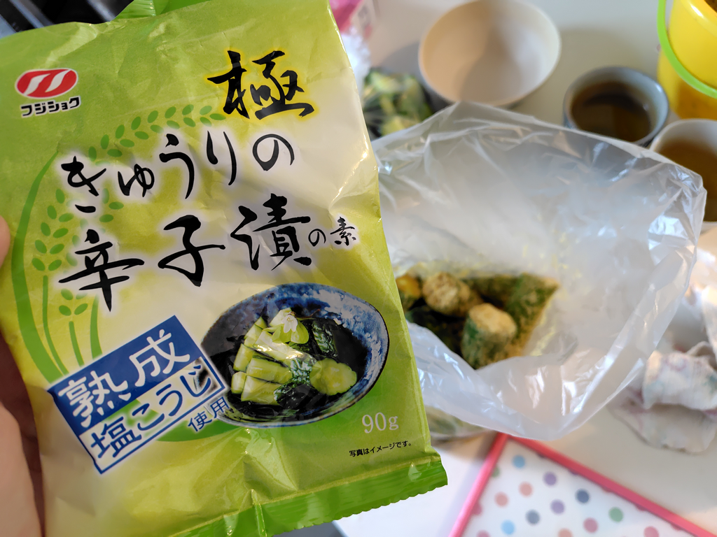 漬物の素で妻好評だったのがこちら。貰い物で、近所のスーパーでは取り扱ってませんでした。どこで買えるか不明💦
