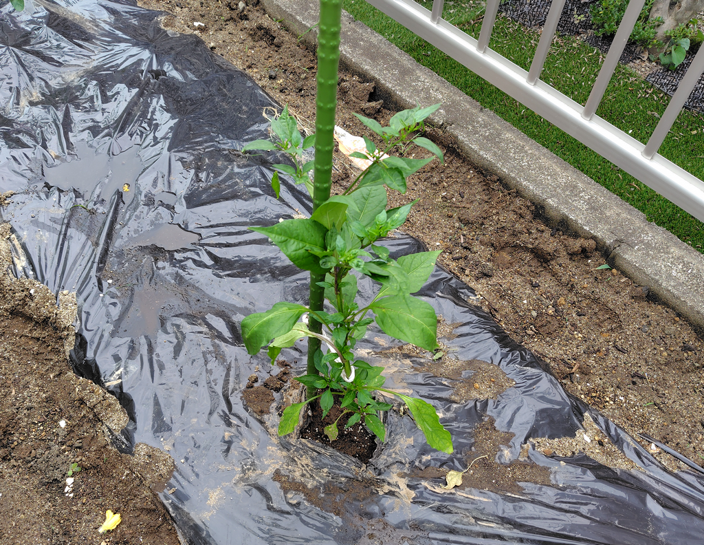 スナップエンドウ撤収して空いた場所なので、植え付けは6月20日頃です。写真は7月6日の状況。