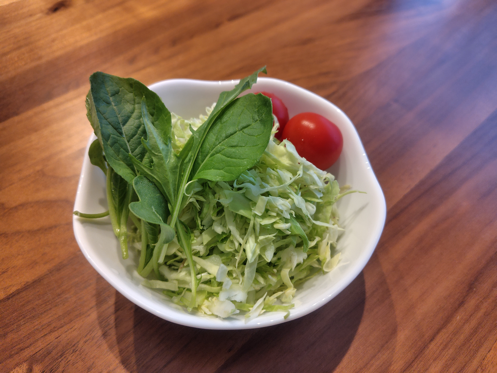 ベビーサラダ添えで味はほぼ変わりませんが、視覚的効果は大きい?