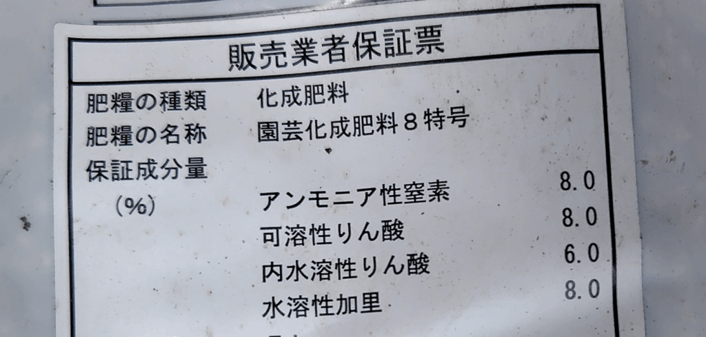 | 化成肥料 | アスパラガス | 1区画 | 1株 | 60g |