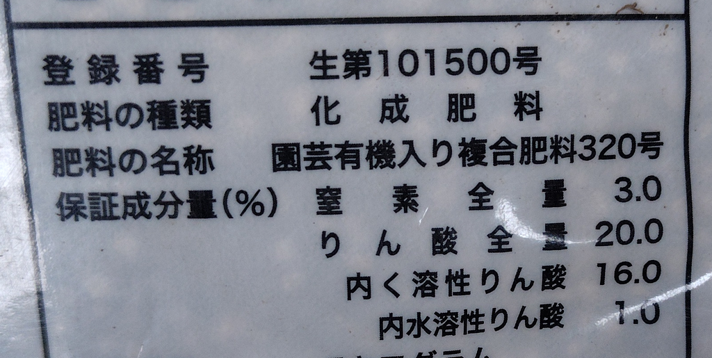 | 骨粉入り有機肥料 | ブルーベリー | 1花壇 | 3株 | 90g |