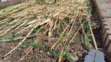 発芽期を過ぎたので、今年はこの2つの芽で終わりだと思っていましたが、ふと気づくと新たに2本発芽。敷き藁がヘタっていたので今回は変形せずに成長。あっという間に1mほどの高さなりました。