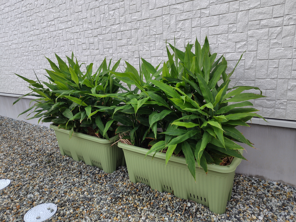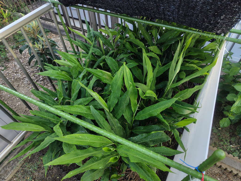 こちらはプランタのミョウガ。日が当たるのは朝だけの場所です。