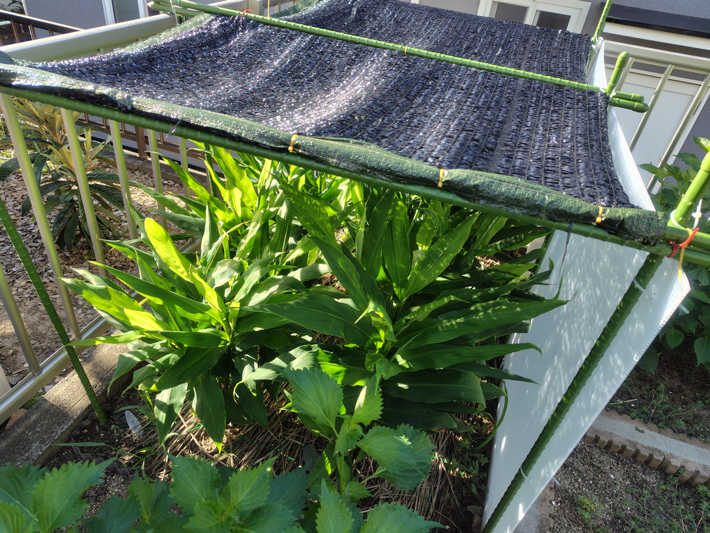 ・地植えは日除けネットとパネルを設置して、酷暑の日差しをシャットアウト