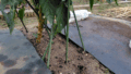 虫の種類は違うかもですが、この投稿と同じです。成長点をちぎって足で踏むだと手間なので、ハサミでカットしてゴミ袋に回収。筒状の葉が無くても虫食いの酷い成長点は全てカットです。