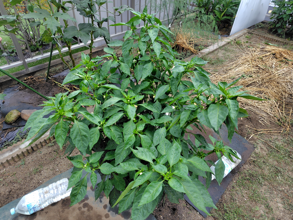 若干涼しい日が増えた仙台。雨も降り、日照時間の「減」よりも暑さからの解放がプラスに働いたのか、ピーマンが元気になってきました💪 花が多く、小ピーマンも大量に育っています。