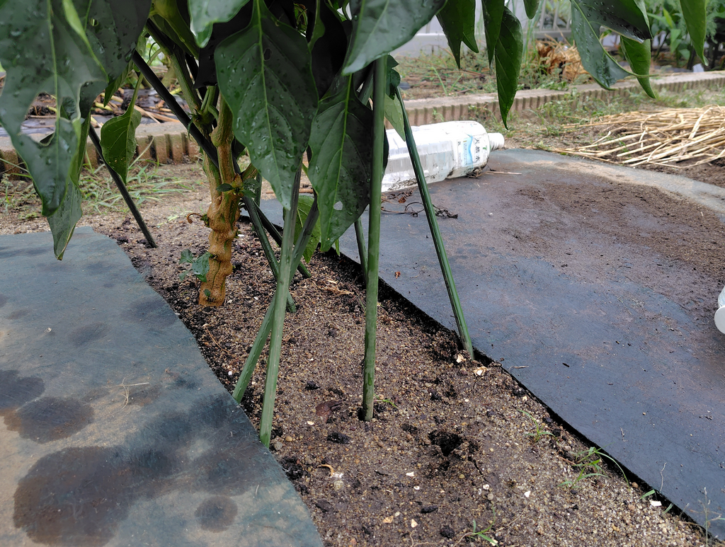 この反省を踏まえ、今年は早めに支柱を追加しました。当面は大丈夫でしょう✨